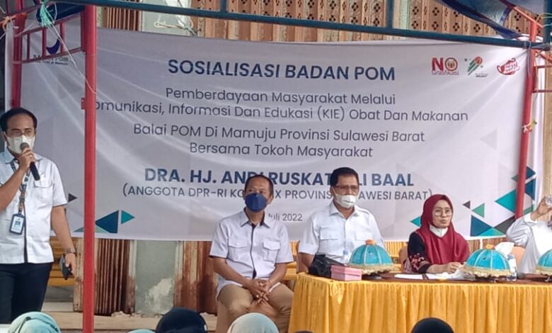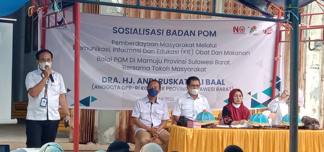 BeeitaNasional.ID.Polman.Sulbar — – Balai Pengawas Obat dan Makanan (BPOM) Mamuju bekerjasama dengan anggota DPR RI Komisi IX Dapil Sulbar Hj. Andi Ruskati Ali Baal, menggelar Sosialisasi Pemberdayaan masyarakat melalui komunikasi, informasi dan edukasi (KIE) Obat dan makanan, berlangsung di Kompleks Pasar Sentral Pekkabata, Kamis (28/7/2022).