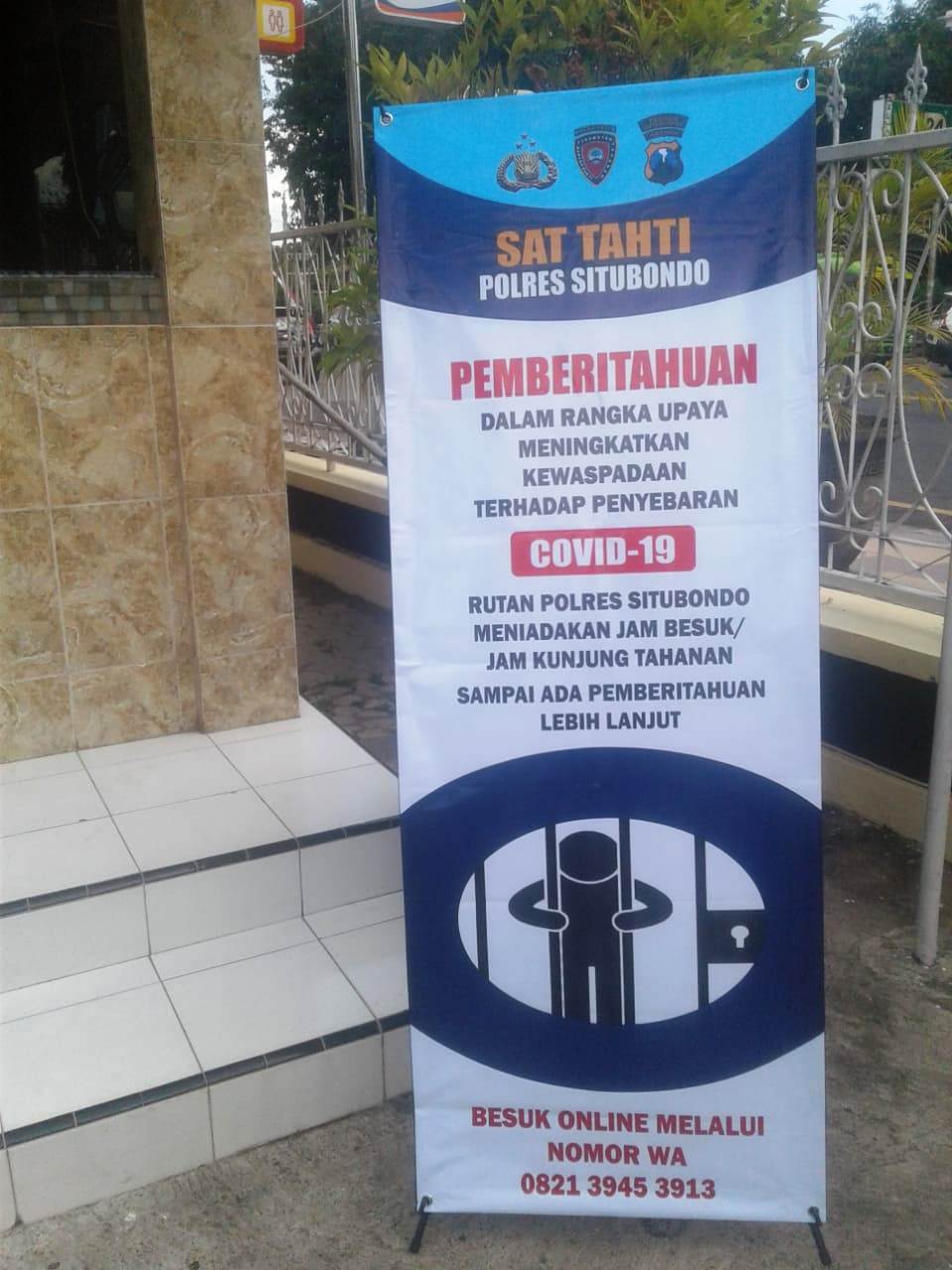 “Ada aturan selama Covid-19 jam besuk tahanan secara langsung ditiadakan diganti secara daring atau video call dan Sat Tahti juga sudah memasang baner pemberitahuan di depan ruang tahanan dan depan penjagaan Mapolres “ jelasnya.