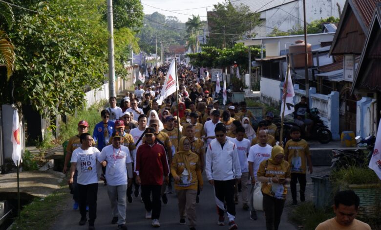 BeritaNasional.id.Majene.Sulbar.–Pengurus DPD Partai Gerindra Provinsi Sulawesi Barat (Sulbar), menggelar jalan santai yang diikuti ribuan kader dan simpatisan, di Majene, Minggu, 26/02/23.