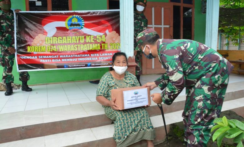 “Kegiatan ini merupakan kepedulian kami terhadap sesama, ditengah-tengah pandemi wabah virus corona (Covid -19), kegiatan ini merupakan rangkaian dalam rangka memperingati HUT Korem 074/Warastratama yang kebetulan pas dengan momentum Ramadhan, ada 500 Kotak nasi dan 350 paket sembako yang akan kita bagikan hari ini, semoga dapat meringankan beban mereka yang membutuhkan”. Tutur Dandim.