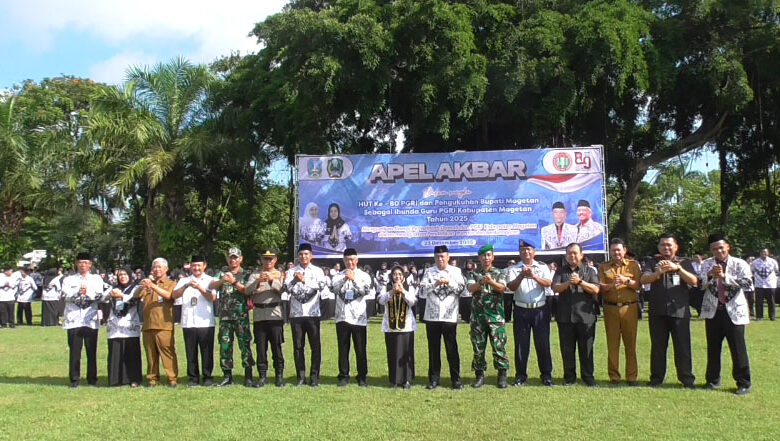 BeritaNasional.ID, Magetan, Jatim – Apel Besar dalam rangka memperingati HUT ke-80 Persatuan Guru Republik Indonesia (PGRI), berlangsung di Alun-alun Magetan, Selasa (23/12/2025)