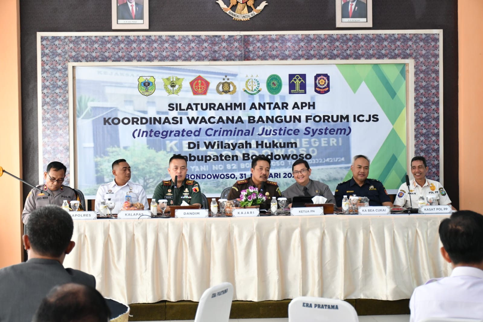ICJS dibentuk untuk menyamakan persepsi penegakan hukum melalui peran tugas dan fungsi masing-masing sesuai ketentuan yang berlaku. Tampak hadir dalam kegiatan tersebut Dandim 0822/Bondowoso Letkol Arm Suhendra Chipta, M.Tr. Hanla., Kajari Djakiyul Fikri, SH., MH., Waka Polres Kompol Jhoes Indra Lana S.H,Msi., Kalapas Dian Artanto, AMd.IP, SH, MH., Kepala Pengadilan Negeri Dr. Hendri Argatama Ellion, SH, S.FIL, MH., Kepala Bea Cukai Jember Asep Munandar, SE, M.SI., dan Kasat Pol PP, Damkar dan Penyelamatan, Slamet Yantoko, S.SOS, MM.