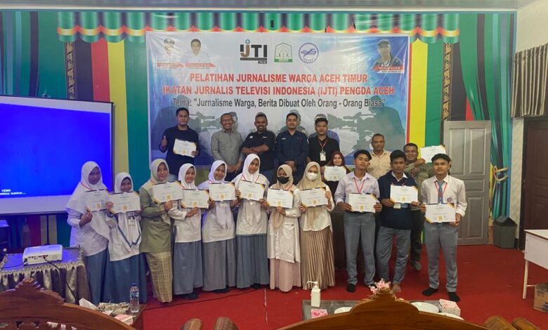 BeritaNasional.ID, ACEH TIMUR — Puluhan pemuda dan Siswa SMA, SMK atau sederajat di Kabupaten Aceh Timur mengikuti pelatihan Jurnalisme Warga yang digelar oleh Ikatan Jurnalis Televisi Indonesia (IJTI) Pengda Aceh dengan tema ” Jurnalisme Warga, Berita Dibuat oleh Orang-orang Biasa”.