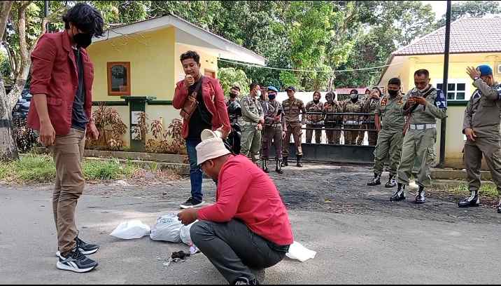 BeritaNasional.ID, Langkat – Usut dugaan kecurangan penetapan calon kepala desa di Pilkades serentak di Kabupaten Langkat, belasan perwakilan dari Pimpinan Cabang Ikatan Mahasiswa Muhammadiyah (PC-IMM) Kabupaten Langkat, Sumut, kembali menggelar aksi demo damai di Kantor Dinas Pemberdayaan Masyarakat Desa (PMD) Kabupaten Langkat, Rabu (15/6/2022). Kali ini para mahasiswa tersebut membakar sebuah boneka pocong dan menaburi kemenyan diatasnya.