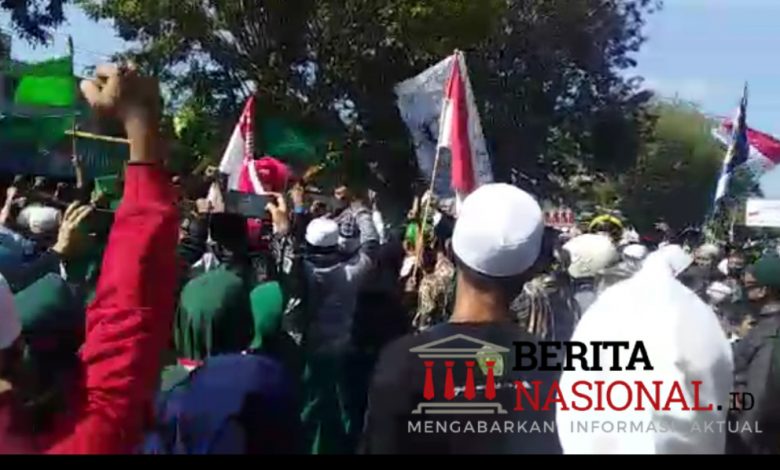 BeritaNasional.ID, SITUBONDO – Ribuan massa Ikatan Santri Alumni Salafiya Syafi’iyah, Sukorejo (IKSASS) yang datang dari daerah Bondowoso, Banyuwangi, Bali dan dari Situbondo sendiri, melakukan aksi demo damai, menuntut polisi segera menangkap Z, pelaku pencatutan nama KHR Ahmad Azaim Ibrahimy, Pengasuh ponpes Salafiyah-Safi’iyah Sukorejo, Kecamatan Banyuputih, Kabupaten Situbondo, Selasa (1/9/2020).