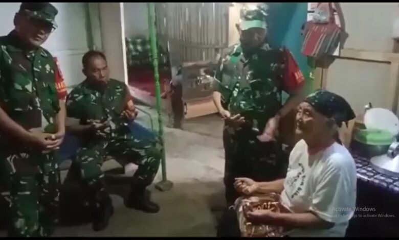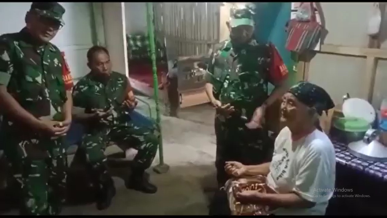 Babinsa Leces, Serda H. Sunariyadi didampingi Peltu Aam, Serma Tarmuji, Sertu Rokib, mendatangi rumah Asih (67) warga Jalan Pahlawan II, RT.007/RW.001, Desa Leces Kecamatan Leces Kabupaten Probolinggo.
