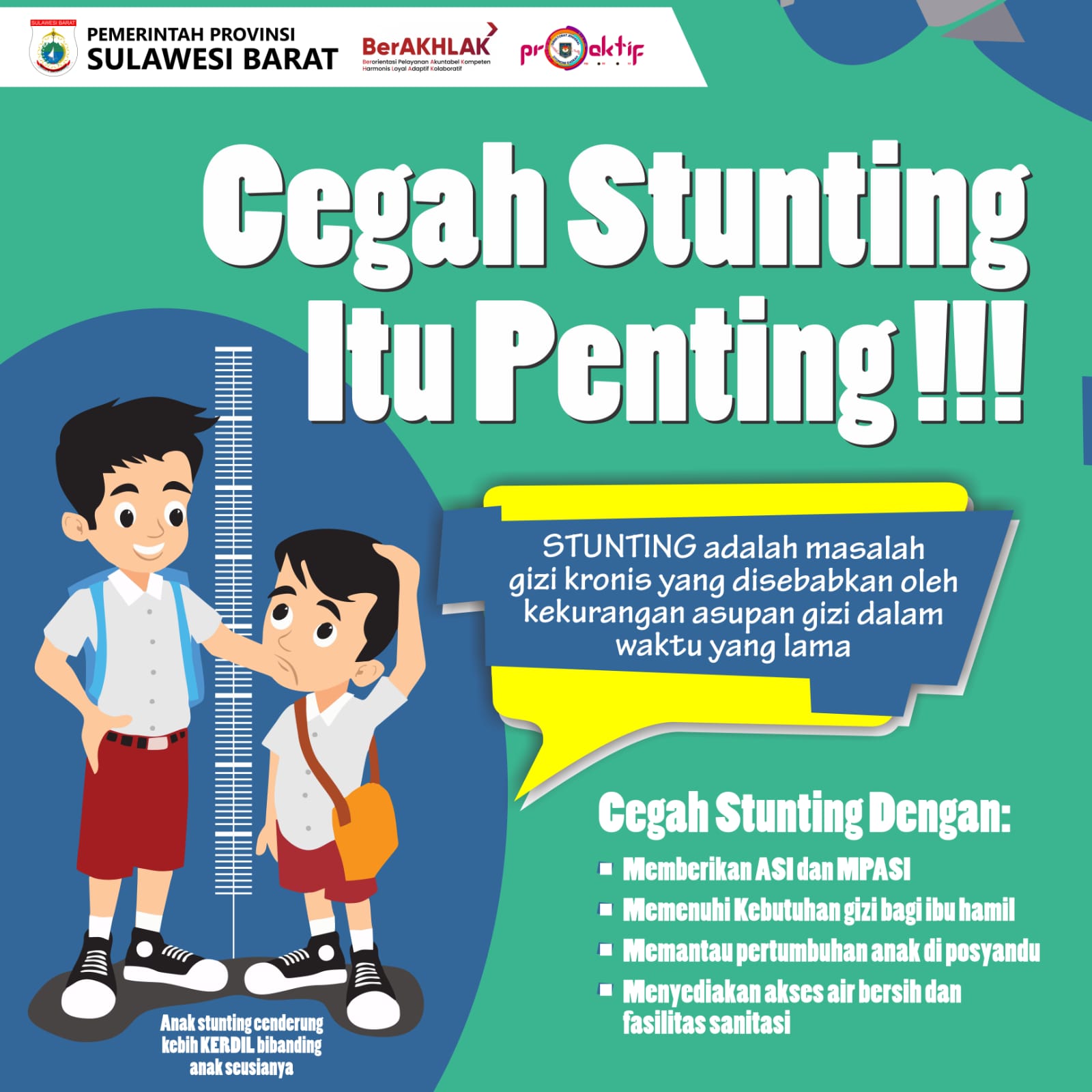 Dia menegaskan, dalam menangani stunting di Sulbar dibutuhkan kolaborasi secara bersama dengan seluruh pihak terkait, baik instansi pemerintahan, pihak swasta dan juga seluruh lapisan masyarakat di semua kalangan.