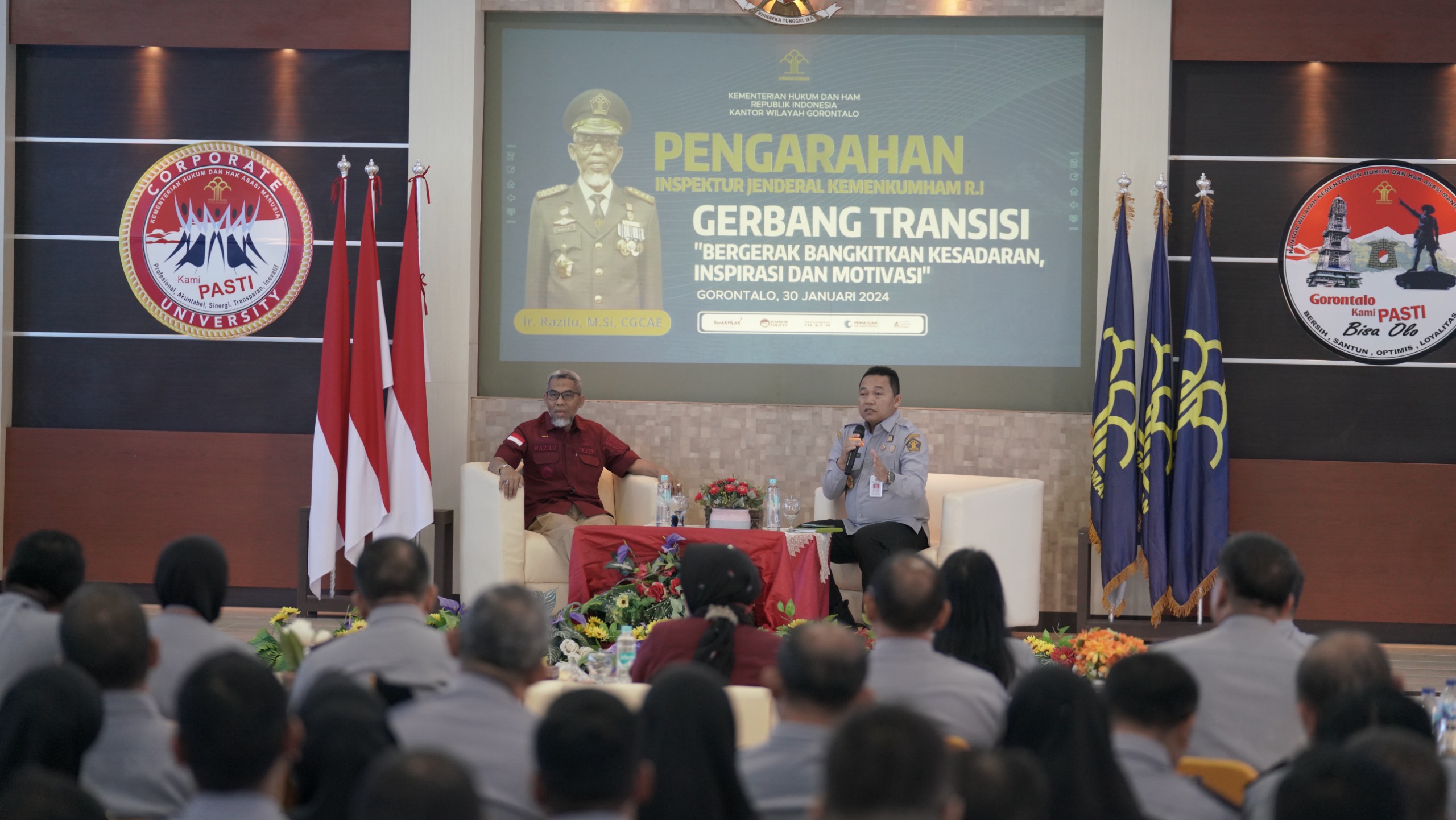 BeritaNasional.ID, GORONTALO – GERBANG TRANSISI (Bergerak Bangkitkan Kesadaran, Inspirasi dan Motivasi) merupakan salah satu program unggulan yang dicetuskan oleh Inspektur Jenderal Kementerian Hukum dan HAM, Razilu.