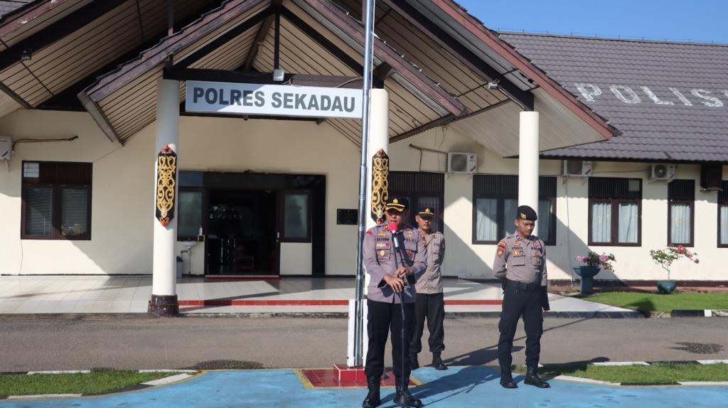 Kapolres Sekadau AKBP Suyono, S.I.K., S.H., M.H yang diwakili Wakapolres Kompol Hoerrudin, S.I.K mengisi jam pimpinan pada apel pagi, menyampaikan beberapa arahan kepada seluruh anggota Polres Sekadau.