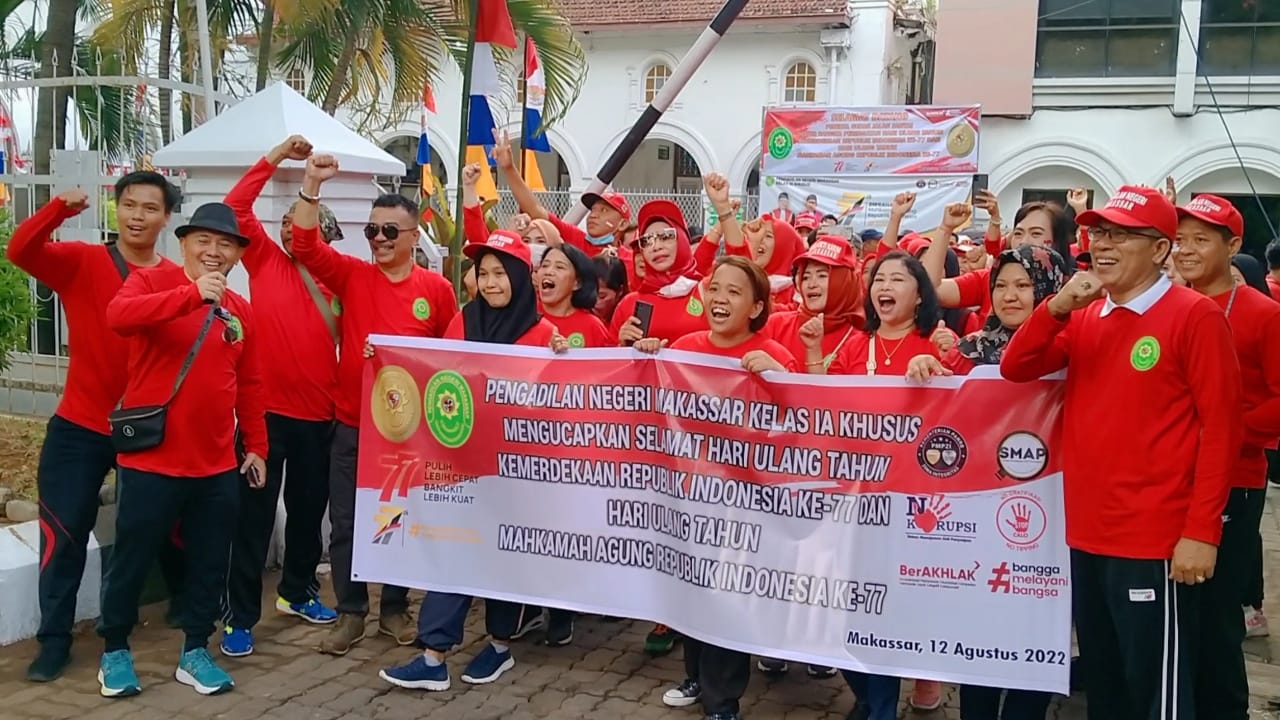 Makassar | Beritanasonal.id – Dalam rangka menyambut HUT Kemerdekaan RI dan HUT Mahkamah Agung RI yang ke 77, keluarga besar Pengadilan Tinggi Makassar menggelar jalan santai.