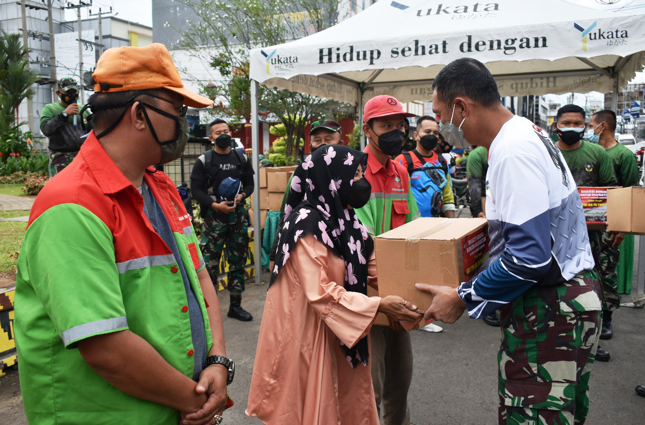 Selain menjaga imunitas tubuh dg berolah raga Gowes sepeda ditengah tengah vandemi covid-19, Rombongan juga melaksanakan Bhakti Sosial membagikan paket sembako kepada masyarakat yang terdampak Covid 19 di tiga lokasi yakni, Tugu Juang Bandar Lampung, Koramil 410-04/TKT dan di Perum Korpri, dengan jumlah 150 paket sembako yg di bagikan, kegiatan Gowes dan Baksos dilaksanakan dalam rangka peringatan HUT TNI ke 76 tahun 2021.