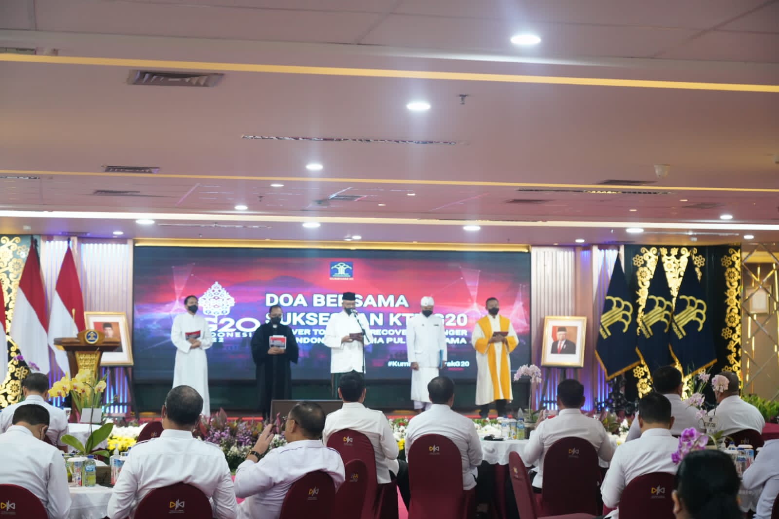 BeritaNasional.ID, Jakarta – Kementerian Hukum dan HAM (Kemenkumham) menyelenggarakan doa bersama untuk mendukung kesuksesan pelaksanaan presidensi G20 di Indonesia. Doa bersama dipimpin oleh lima pemuka agama yaitu Islam, Kristen Protestan, Kristen Katolik, Hindu, dan Budha, serta diikuti oleh seluruh jajaran Kemenkumham.