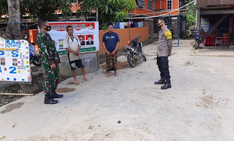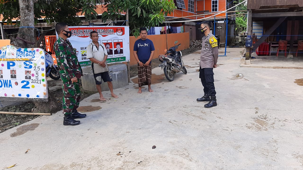 BeritaNasional.ID, Wajo – Untuk menjaga situasi Kamtibmas di wilayah binaanya tetap kondusif, Babinsa Sertu Syamsuddin bersama Bhabinkamtibmas Briptu Latike lakukan patroli dan sambang dengan warga binaan di Desa Lowa Kecamatan Tanasitolo, Kabupaten Wajo dalam rangka jelang Pilkades Tahun 2021, Jumat (21/5/2021) Pagi.