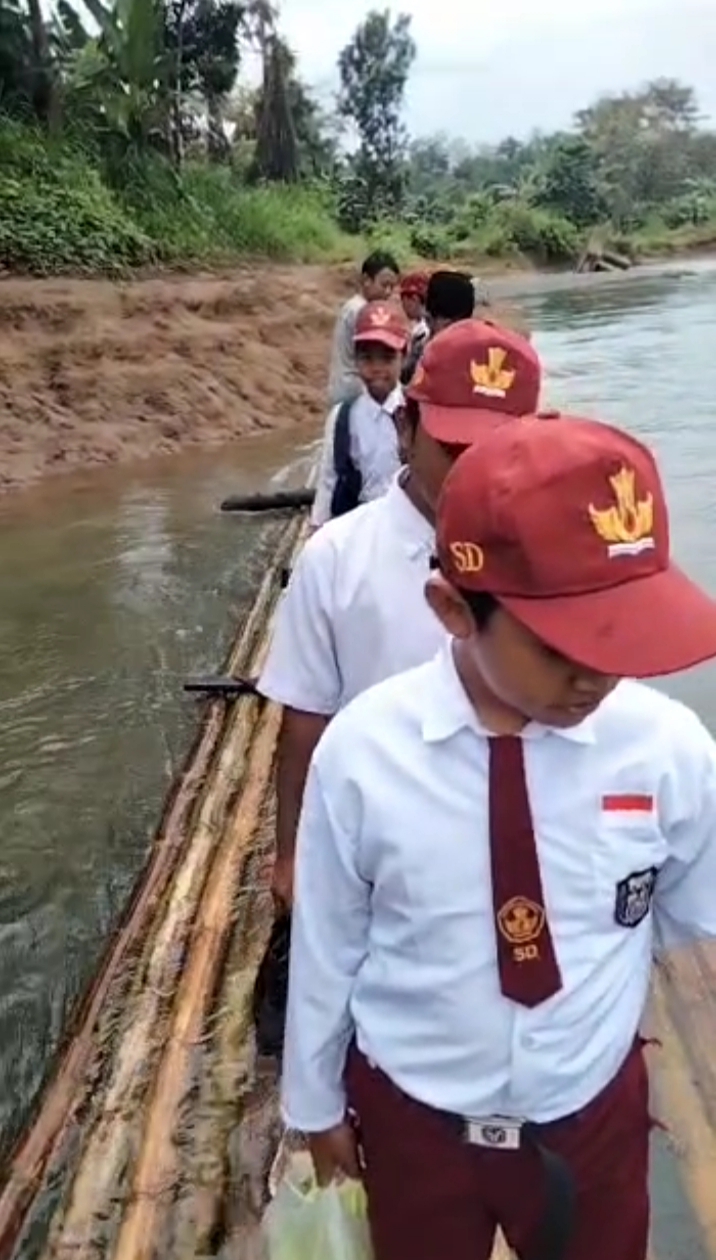 Untuk tetap bersekolah, para siswa tersebut tidak memperdulikan ancaman dari derasnya air sungai.