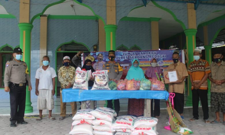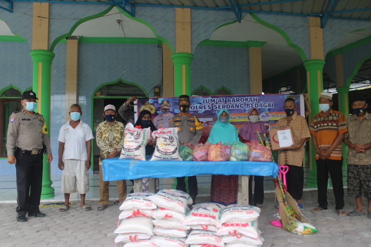 BeritaNasional.ID Sergai – Kapolres Serdang Bedagai, AKBP Robin Simatupang melaksanakan kegiatan Bakti Sosial Jumat Barokah di Masjid Nurul Huda Dusun II Desa Pematang Ganjang Kecamatan Sei Rampah, Kabupaten Serdang Bedagai, Jumat (1/10/2021).