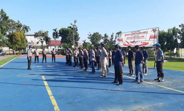 Apel digelar di halaman Mapolres Sekadau, Jl. Merdeka Timur, selesai pelaksanaan apel pagi, dihadiri Kasatgas dan personel Operasi Kontijensi Aman Nusa II, Kamis (11/6/2020).