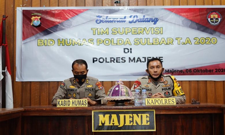 Sulbar .Beritanasional.id — Kepolisian Resort Majene menerima kunjungan Supervisi Bid Humas Polda Sulbar yang dipimpin langsung oleh Kabid Humas AKBP Syamsu Ridwan bersama timnya, Selasa (6/10/20).