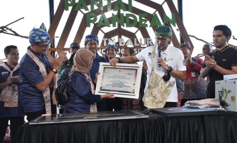 SITUBONDO, BeritaNasional.id – Menteri Pariwisata dan Ekonomi Kreatif (Menparekraf) Sandiaga Salahuddin Uno memberikan penghargaan kepada Bupati Situbondo Karna Suswandi dan Kepala Desa Wonorejo karena berhasil masuk 75 besar Desa Wisata terbaik Indonesia. Jumat (11/8/2023).