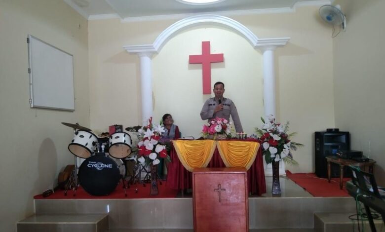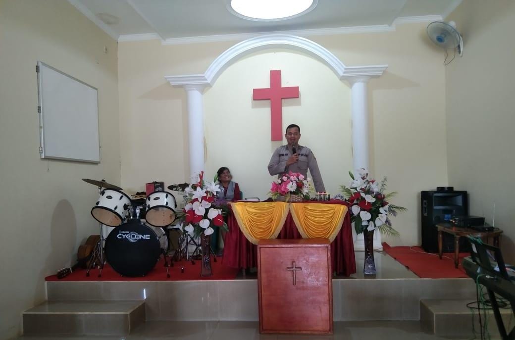 Kanit Binmas Polsek Sekadau Hulu Sampaikan pesan Kamtibmas di Gereja GUPDI Rawak Cabang Filadelfia