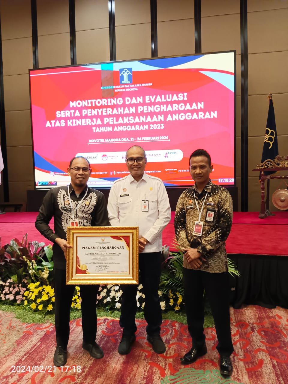 BeritaNasional.ID, JAKARTA – Kantor Wilayah Kemenkumham Gorontalo menghadiri monitoring dan evaluasi serta penyerahan penghargaan atas kinerja pelaksanaan anggaran tahun 2023, Rabu (21/2/2024).