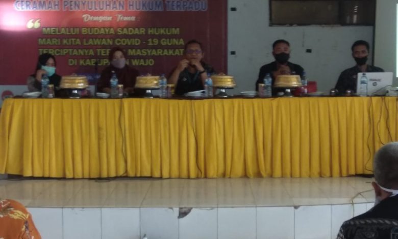 Penanganan Covid yang masih berlangsung hingga saat ini melibatkan kerjasama semua pihak. Termasuk upaya yang dilakukan tim Kanwil Kemenkumham Sulsel dalam penyuluhan hukum terpadu dengan Pemkab Wajo menghadirkan narasumber kepala bagian hukum pemkab Wajo A. Elvira Fajarwati, Kepala Kecamatan Tanasitolo hj. Andi Sahri Alam dan Penyukum Kanwil Sulsel Puguh Wiyono.