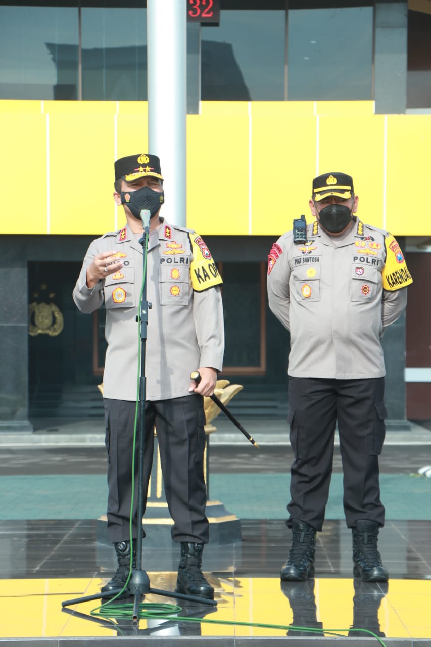 Dalam arahannya, Kapolda menyampaikan bahwa nanti malam seluruh personel Polda Jatim agar siap siaga bila dilibatkan dalam pengamanan perayaan tahun baru.