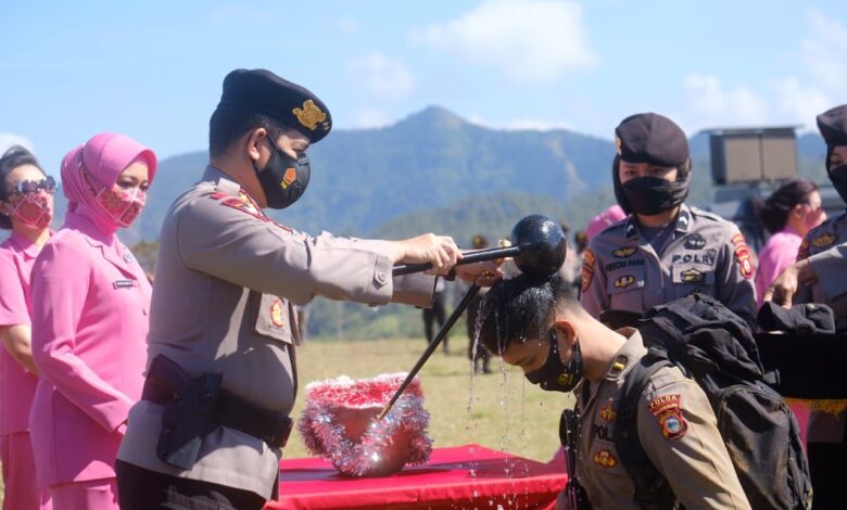 Dalam kesempatannya Kapolda Sulsel Irjen Pol Merdisyam, secara simbolis memasangkan baret kepada perwakilan bintara remaja Dit Samapta Polda Sulsel yang diawali dengan penyiraman air kembang sebagai tradisi upacara penutupan pembaretan tersebut.