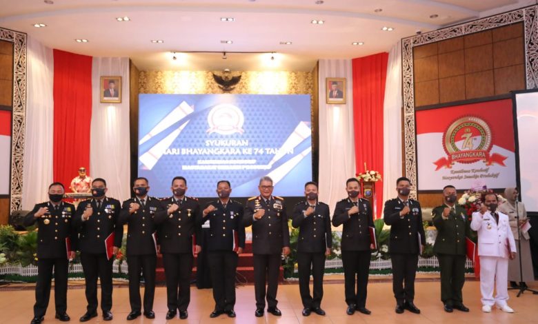 BeritaNasional.ID Medan – Pada perayaan Hari Bhayangkara ke 74, Kapolda Sumut Irjen Pol. Drs. Martuani Sormin, M.Si menyerahkan piagam penghargaan Kapolri kepada personel Polda Sumut berprestasi diantaranya Kapolresta Deli Serdang Kombes Pol Yemi Mandagi,S.I.K, Wakapolresta Deli Serdang AKBP Julianto P.Sirait,S.H,S.I.K, Kabagbinops Roops Polda Sumut AKBP Edy Suryantha Tarigan, S.I.K.