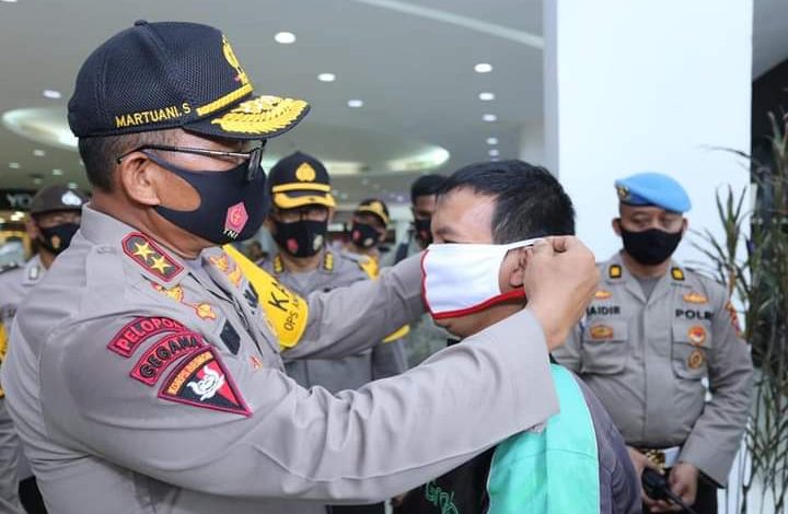 Tak hanya itu, Kapoldasu juga membagikan masker merah putih kepada para pengunjung Plaza Medan Fair sebagai langkah pendisiplinan adaptasi kebiasaan baru di tengah pandemi Covid-19.
