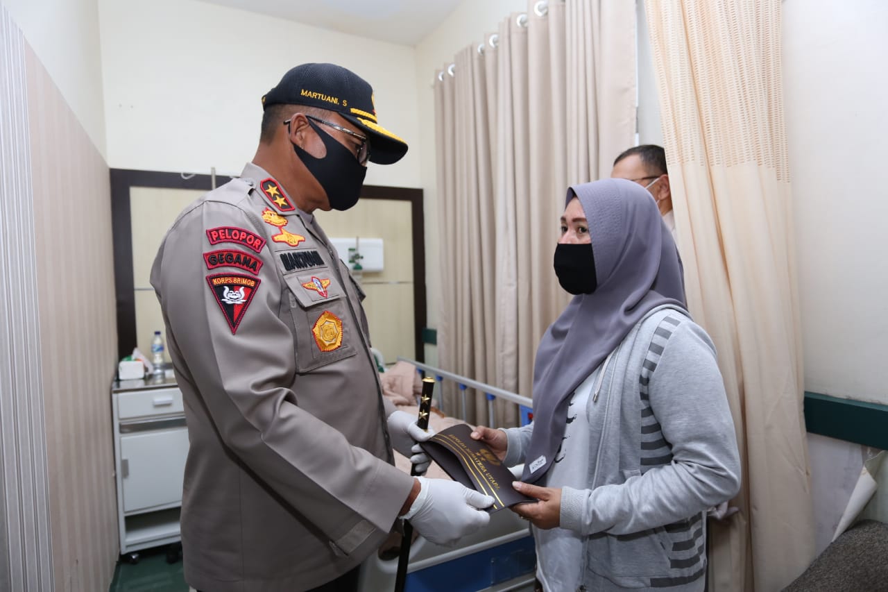 BeritaNasional.ID Medan – Kepala Kepolisian Daerah Sumatera Utara Irjen Pol. Drs. Martuani Sormin, M.Si didampingi Karumkit Bhayangkara TK I Medan mengunjungi Aipda Daely Personel Sat Reskrim Polres Pelabuhan Belawan yang menjadi korban pembacokan massa saat tangkap DPO di Lorong Supir Kel. Belawan I, Kec. Medan Belawan, Rabu (10/6/2020) malam.