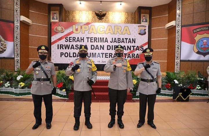 BeritaNasional.ID Medan – Kapolda Sumut Irjen Pol. Drs. Martuani Sormin,M.Si memimpin serah terima jabatan Irwasda Polda Sumut dan Dir Lantas Polda Sumut bertempat di Aula Tribrata Mapolda Sumut, Jumat (19/06/2020).