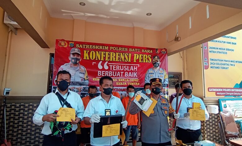BeritaNasional.ID, Batubara – Kapolres Batubara AKBP Ikhwan Lubis SH, MH didampingi Kasat Reskrim AKP Fery Kusnadi SH, MH ungkap 5 orang pelaku pencurian dari kasus yang berbeda, pada Pres Realist kasus kriminal di Halaman Sat Reskrim Mapolres Batubara. Senin, (06/09/21).