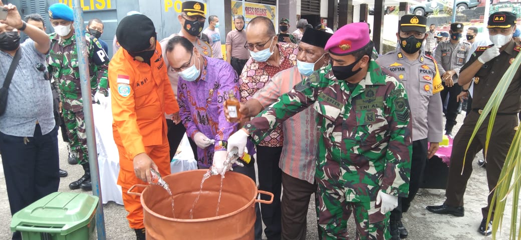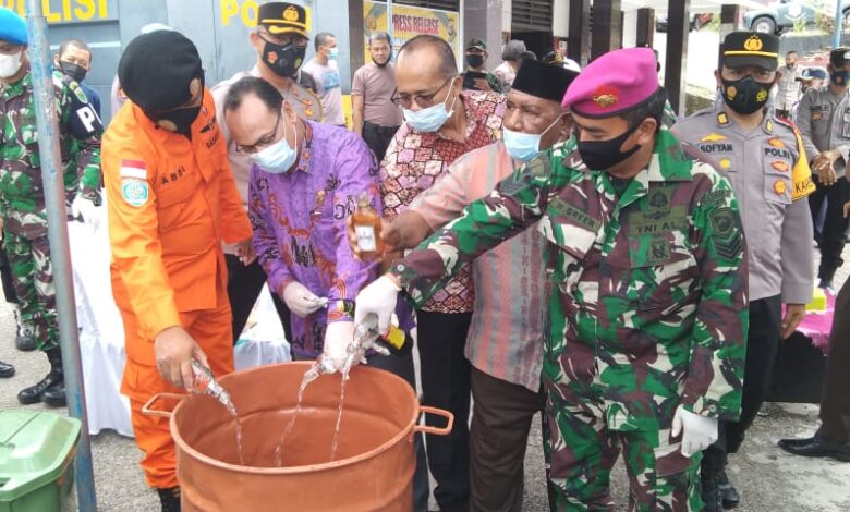 BeritaNasional.ID, FAKFAK PAPUA BARAT – Pemusnahan barang bukti hasil Operasi Pekat Mansinam dilaksanakan di Depan Mako Polres Fakfak, Kamis 6 Mei 2021.