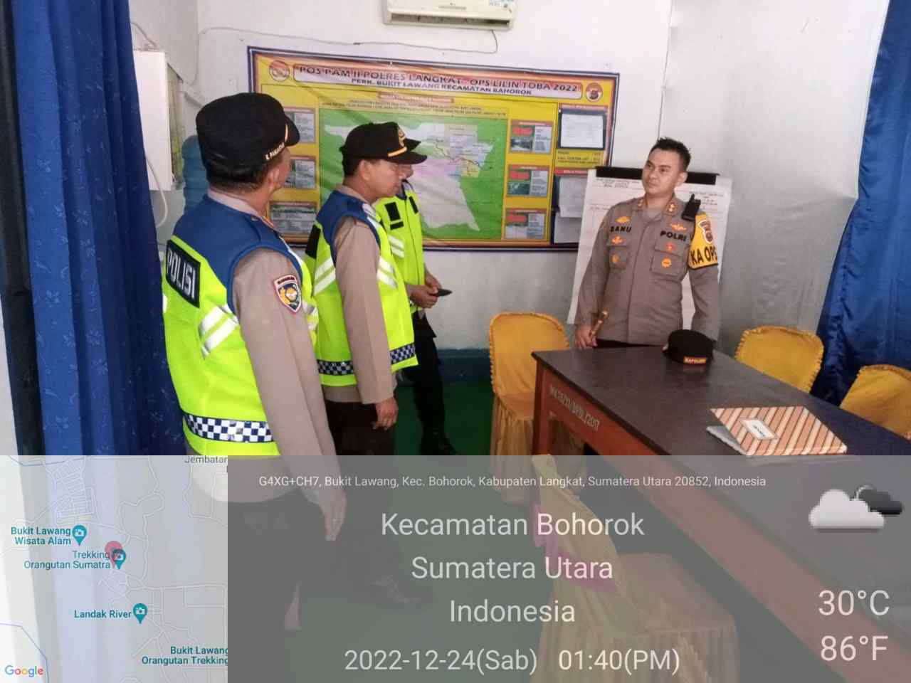 Kapolres Langkat yang saat itu langsung mengecek Pos Pengamanan 2 di kawasan wisata Bukit Lawang, di Kecamatan Bahorok, Kabupaten Langkat, Sumut, guna melihat kesiapan personel dan sarana prasarana yang ada di pos tersebut.