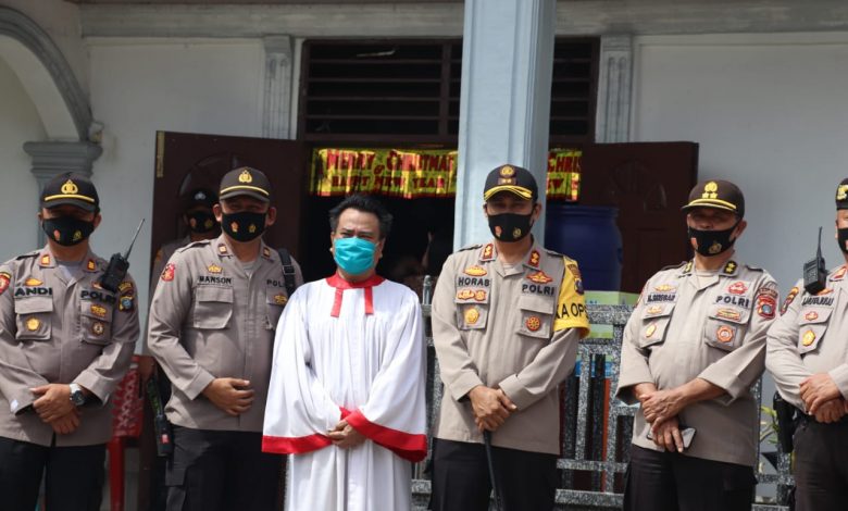 BeritaNasional.ID Madina – Kapolres Madina AKBP Horas Tua Silalahi, S.I.K, M.Si melakukan pengecekan kesiapsiagaan personil TNI-Polri yang melaksanakan pengamanan ibadah kebaktian Natal di Gereja yang berada di Kabupaten Mandailing Natal, Jumat (25/12/2020).
