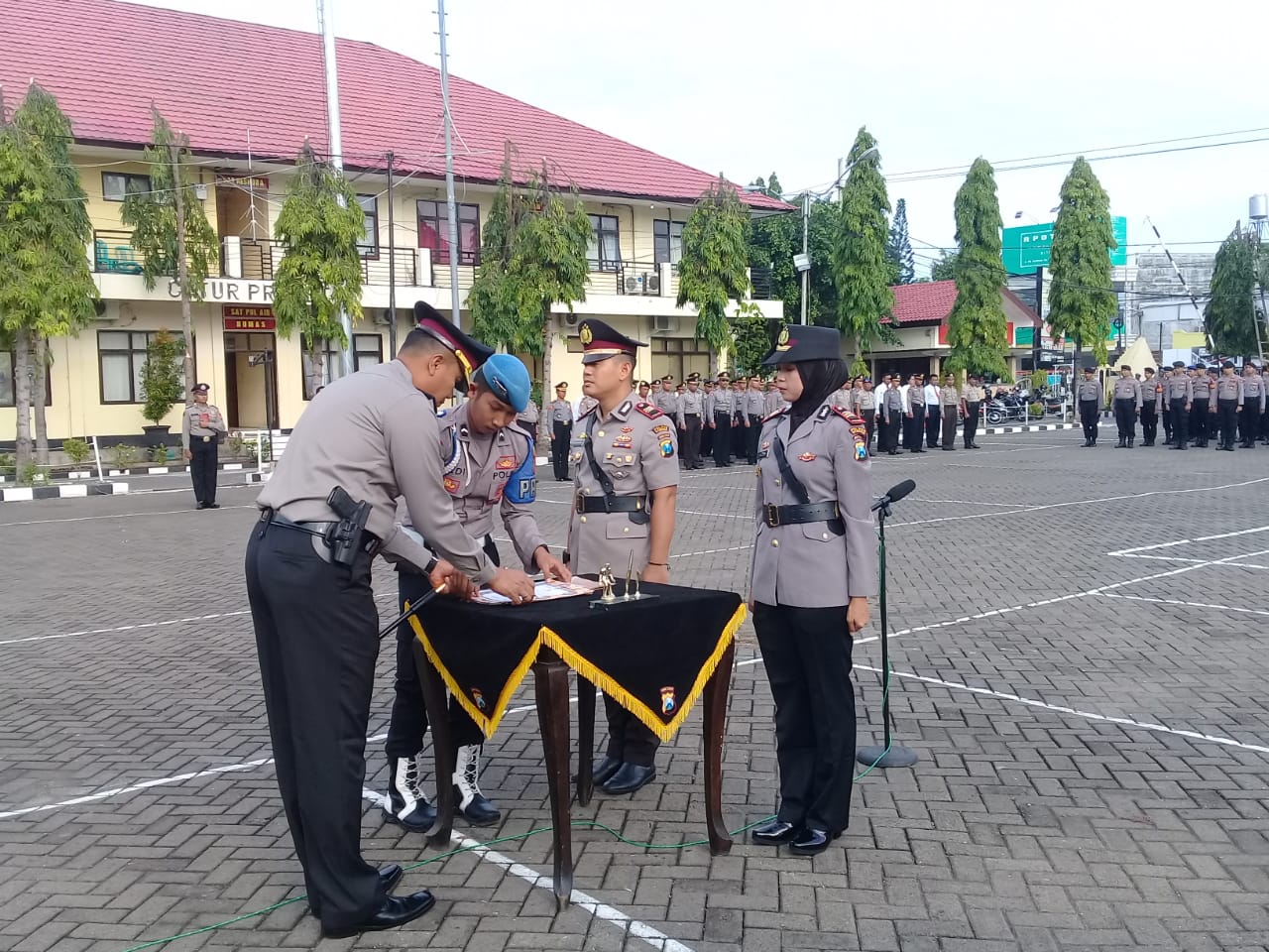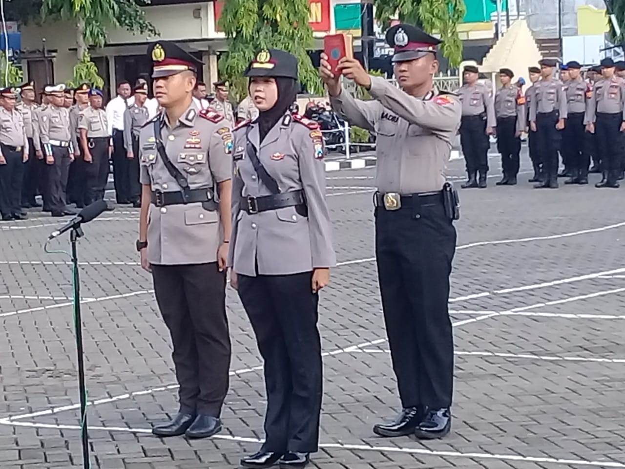 “ Kepada AKP Hendrix, kami ucapkan terima kasih atas dedikasi dan pengabdiannya selama ini di Polres Situbondo dan selamat melaksanakan tugas di tempat yang baru, semoga sukses. Kepada AKP Indah, kami juga ucapkan selamat bertugas dan kami harap lebih mengoptimalkan tugas kedepan,” ucap Kapolres.