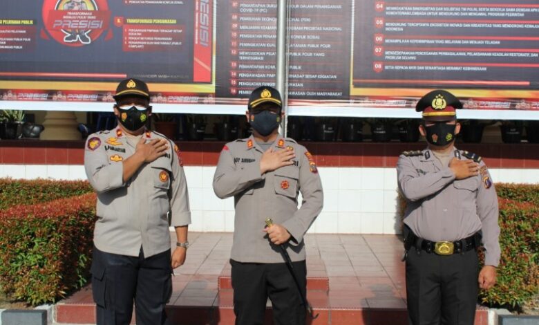 Kapolres Pematangsiantar Pimpin Upacara Pelepasan Purna Bakti Dua Personel