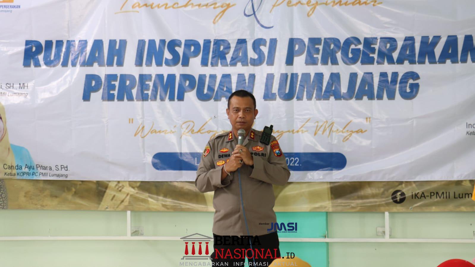 Kapolres Lumajang AKBP Dewa Putu Eka D., S.H.,S.I.K menghadiri kegiatan Lounching dan Peresmian Rumah Inspirasi Pergerakan Perempuan Lumajang, hadir juga ketua PMII Kabupaten Lumajang Ahmad Taufiq Hidayatullah S.Pd serta Candra Ayu S.Pd selaku ketua Kopri PMII Lumajang.