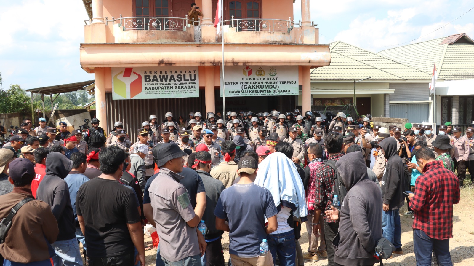 Untuk menjaga keamanan selama jalannya aksi, Kapolres Sekadau AKBP Suyono, S.I.K., S.H., M.H mengerahkan ratusan personel pengamanan di lokasi kantor sekretariat Bawaslu yang beralamat di Jalan Merdeka Timur Km 3, kecamatan Sekadau Hilir, kabupaten Sekadau, pada Kamis (10/8/2023) siang.
