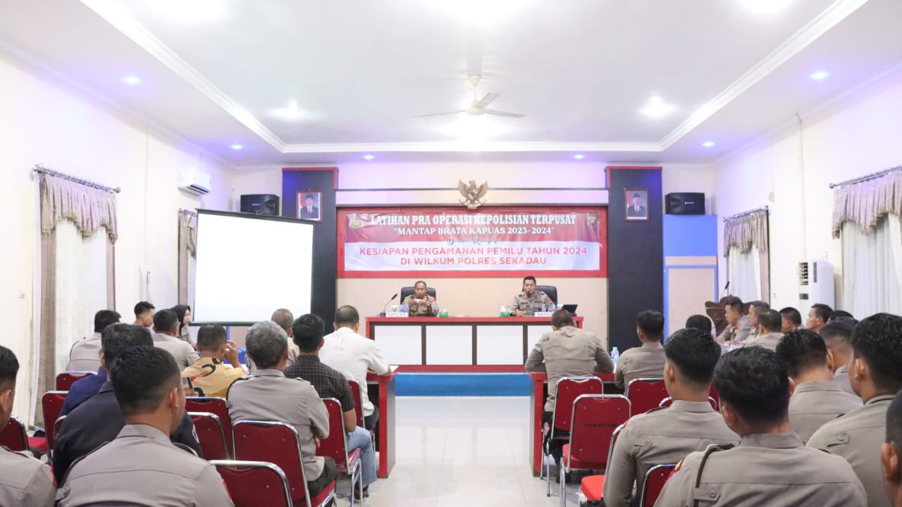 BeritaNasional.ID, SEKADAU KALBAR – Dalam rangka kesiapan menghadapi agenda Pemilu 2024, Polres Sekadau menggelar Latihan Pra Operasi (Lat Pra Ops) dengan sandi “Mantap Brata Kapuas 2023-2024”, yang berlangsung di aula Mapolres Sekadau, pada Senin, (16/10/2023).