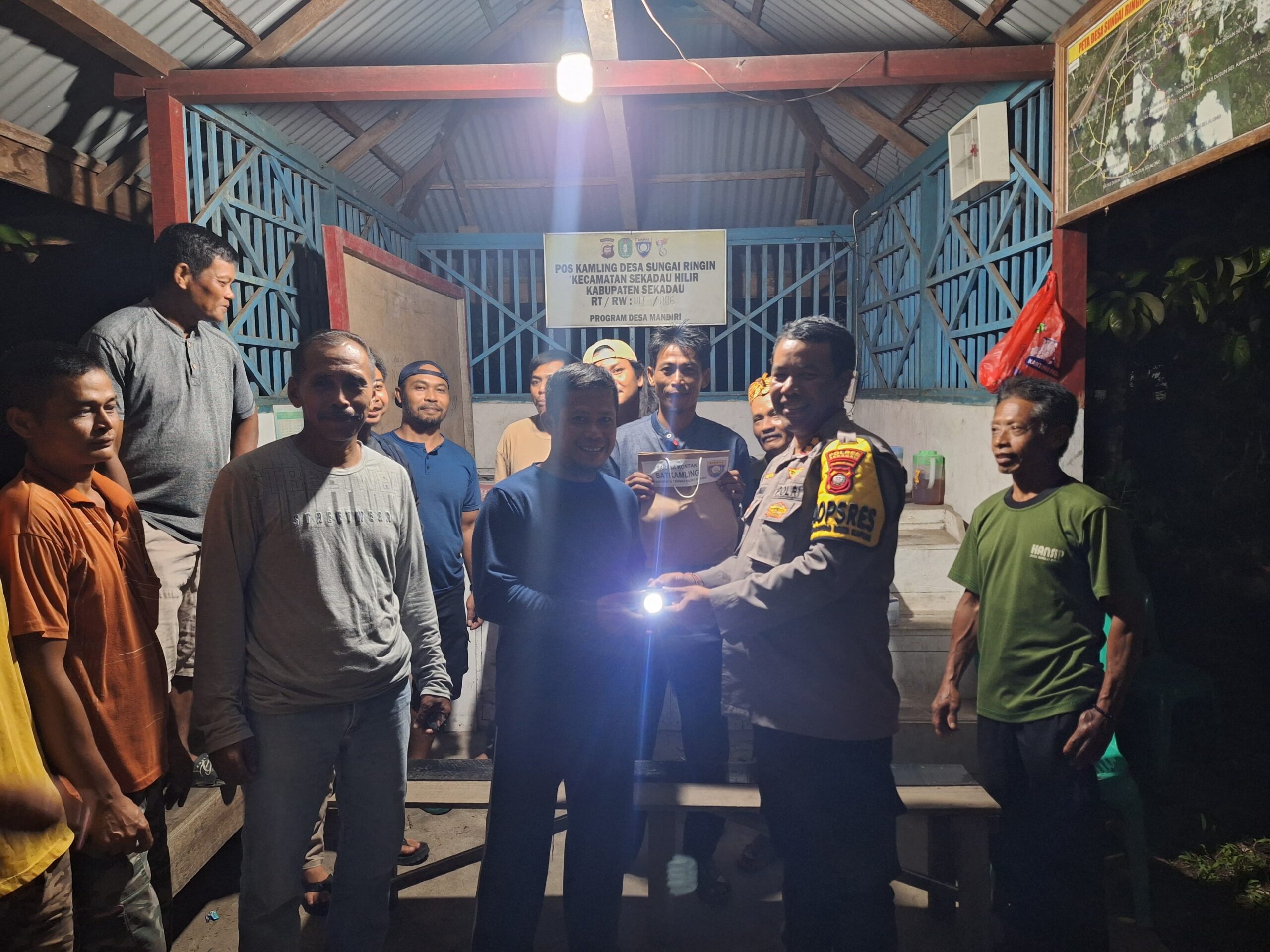 Kedatangan Kapolres disambut oleh Sekdes Sungai Ringin, Sulisnan selaku penasehat Satkamling Nirboyo, Kadus Senuruk Tono, Ketua RT, dan Awak Satkamling Nirboyo.