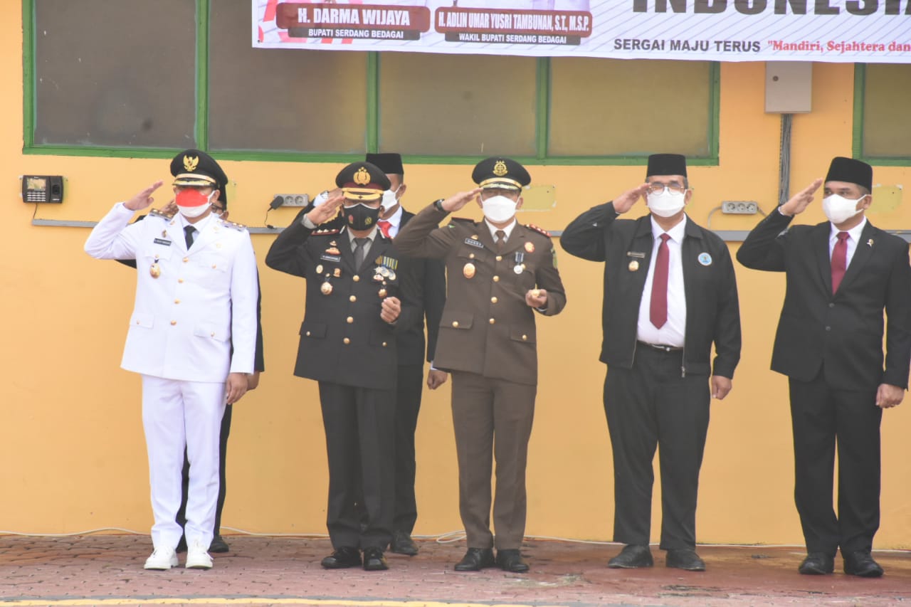 BeritaNasional.ID Sergai – Bupati Serdang Bedagai, H.Darma Wijaya memimpin Upacara Peringatan Hari Ulang Tahun (HUT) ke-76 Kemerdekaan Republik Indonesia (RI) di halaman Kantor Bupati Serdang Bedagai, Selasa (17/08/2021).