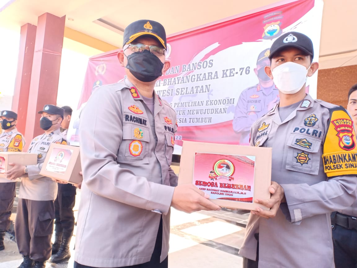 BeritaNasional.ID, Sinjai – Dalam rangka menyambut Hari Bhayangkara Ke-76 Tahun 2022, Kepolisian Resor Sinjai menggelar Bansos (Bantuan Sosial) pemberian bantuan kepada warga kurang mampu.