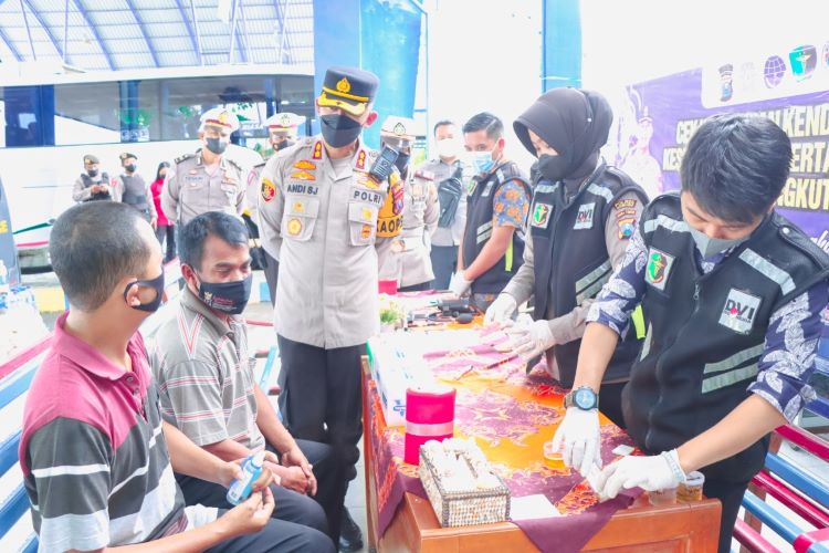 BeritaNasional.id – SITUBONDO JAWA TIMUR – Untuk memastikan sopir antar kota dalam provinsi tidak menggunakan narkoba saat mengemudi para penumpang yang akan mudik lebaran, Polres Situbondo bersama petugas gabungan melaksanakan tes urine dan memeriksa kesehatan para pengemudi di Terminal Situbondo, Rabu (20/4/2022).
