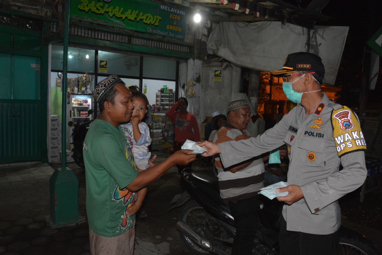 Kapolres Situbondo Pimpin Patroli Gabungan Dan Membagikan Masker Pada Pedagang