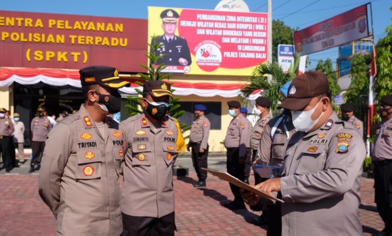 BeritaNasional.ID, TANJUNGBALAI — Kapolres Tanjungbalai AKBP Triyadi, SH,SIK pada hari Pertama menjabat sebagai Tanjungbalai memim[in apel pagi di halaman apel Kapolres Tanjungbalai, Senin 19/ Juli 2021