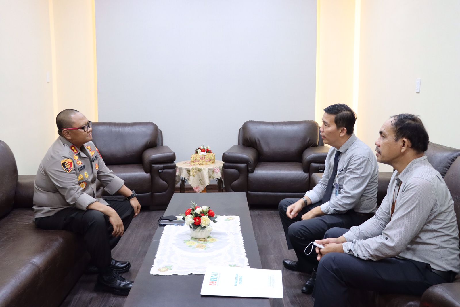 BeritaNasional.ID-TANJUNGBALAI SUMUT Kapolres Tanjungbalai AKBP Ahmad Yusuf Afandi SIK. MM, menerima Kunjungan dan Silaturahmi dari Perwakilan bank BNI Cabang Kota Tanjungbalai. Kegiatan yang dilaksanakan pada 15/8/22, sekitar Pukul 10.05 Wib di Ruang Paramasatwika Polres Tanjungbalai.