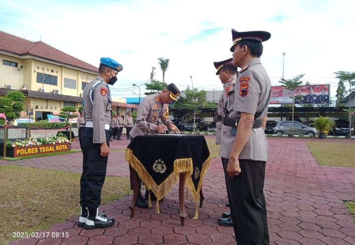 Upacara serah terima jabatan (sertijab) dipimpin langsung oleh Kapolres Tegal Kota AKBP Jaka Wahyudi, SH, SIK, MSi, dan dihadiri oleh para Pejabat Utama Polres, Kapolsek dan seluruh anggota yang sedang tidak melaksanakan dinas.