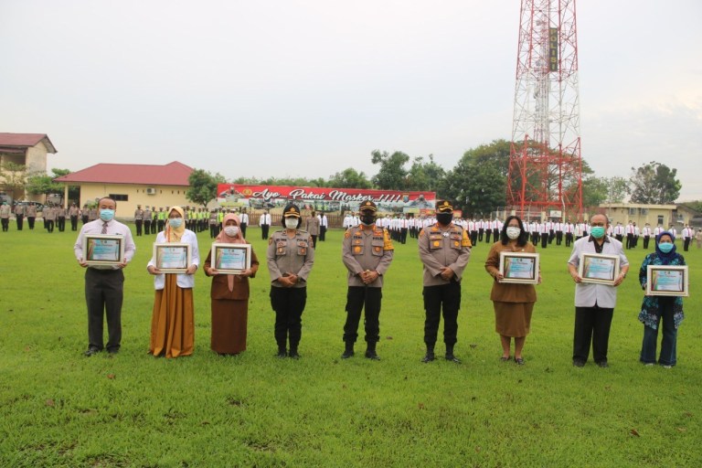 Kapolresta Deli Serdang Berikan Piagam Penghargaan Kepada Tim Medis yang Melakukan Penyuluhan Pola Hidup Sehat