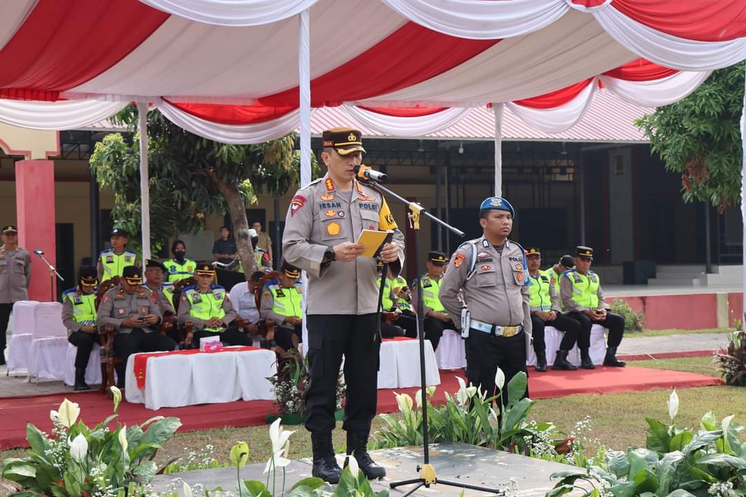 Pimpinan Apel Kapolresta Deli Serdang Kombes Pol. Irsan Sinuhaji, SIK, MH membacakan amanat dari Bapak Kapolri, yang mana apel gelar pasukan Operasi Ketupat 2023 ini secara serentak dilaksanakan di seluruh Indonesia mulai dari tingkat Mabes Polri hingga satuan kewilayahan.